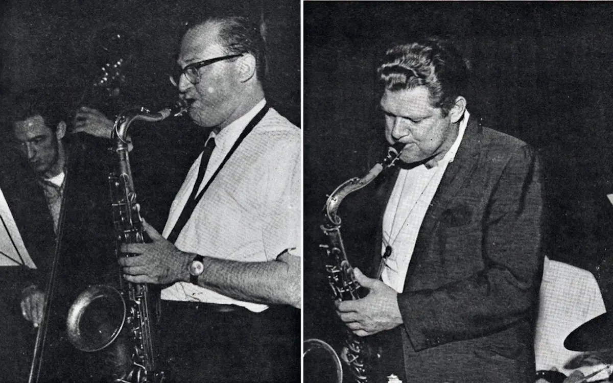 Cohn and Sims have been playing together intermittently for the past sixteen or seventeen years, since the days of Woody Herman’s Second Herd. Both have always been disciples of Lester Young’s way of playing the tenor, but both achieve considerable individuality. On their last visit, I remember being struck particularly by the inventiveness and power of Al Cohn’s playing – so much more impressive than on record. This time, it was Sims who caught the ear more. Within the Young idiom, the tones of the two saxophonists are quite different. Cohn gets a big fat sound, Sims a lighter and more hollow one, and he perhaps comes closer to the Prez sound of 1939-40. Sims, of course, is incapable too of playing a phrase that doesn’t swing and his melodic lines are refreshingly simple.