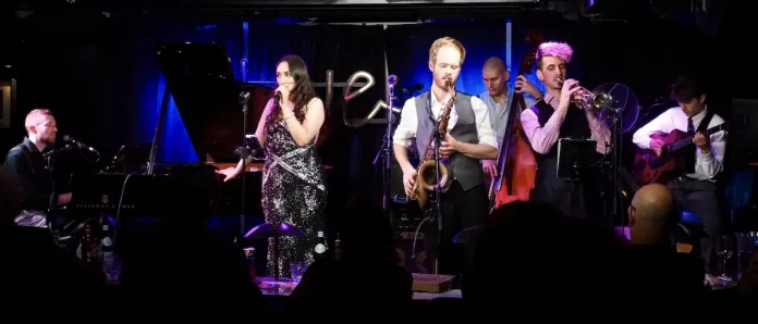 In case you’re wondering, the Easy Rollers are a septet, founded in 2016 and comprising Dani Sicari (v), Alex Hill (p), Tom Sharp (t), Jamie Stockbridge (ts, ss, cl, bcl), James Girling (g), Sam Jackson (b) and Matt Brown (d). As it happened, Matt Brown was ill and unable to appear, and rather than looking for a dep the others worked around him, adapting the charts accordingly, and so seamlessly that no one noticed.