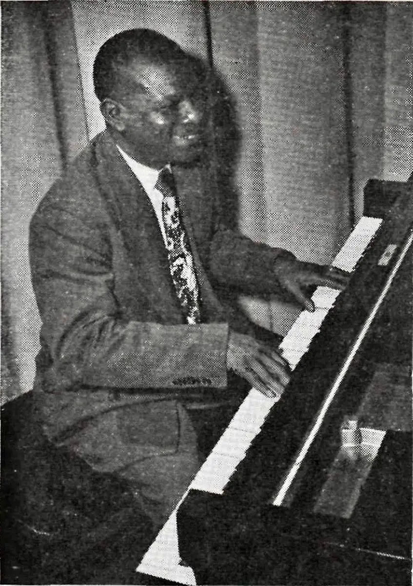 This kind of music I’ve been hearing all my life – played in honky tonks and different places in New Orleans. Some of the best was even played by people who nobody ever heard of, for this kind of piano was played all over New Orleans when I was a kid. I play a little like that at times, in fact that was the type of music I started out playing. The piano in New Orleans some 35 or 40 years ago was all the go, an’ there were a gob of pianists around in those days – most every house had a piano in it. There was no radio or television in those days, so what happened was this. New Orleans, you know, is divided into Wards, and in every Ward they had someone who they thought was their best piano player. One piano player would stop at a house and start playing and people who would come in off the street to listen. Then someone would send for another piano player from a different Ward, and then the party might go on for four or five days. The winner was a matter of public opinion. When I started coming up, there was this little guy who taught me, Burnell Santiago, who was a nephew of Willie Santiago. His brother Lester is now with Paul Barbarin’s band. The whole family were very gifted musically, but Burnell was a genius. He would win every contest – he could beat the jazz pianists and the honky tonk ones. He could play any kind of music and he could beat them all. He could have had a wonderful career in music, but somehow he didn’t care to play for money. Anyone in New Orleans will tell you that he was the greatest. Pity he never made a record.