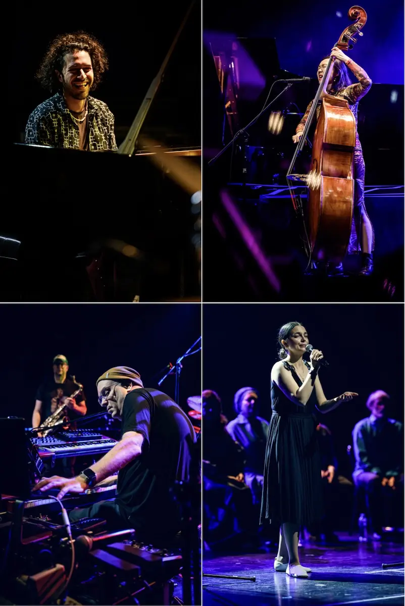 Saturday’s concert programme opened with The Wandering Bird (Wędrujący ptak). Taking up the challenge of reconciling tradition and improvisation, it was a project by pianist and synthesist Łukasz Ojdana and his wife, vocalist Maria Ojdana, with the Ukrainian vocal group Drevo (Tatiana Sopiłka, Anna Ohrimchuk, Serhij Ohrimchuk and Jurij Pastushenko). The music fused three elements: archaic Polish and Ukrainian songs, expansive jazz improvisation and contemporary synthesiser colours. These layers intertwined to form a narrative rich in tension and contrast, centered around the titular bird – a symbol of the soul and a guide between worlds. Drevo sang with the characteristic timbre of Ukrainian folk tradition, while Ojdana wove his own counterpoint, extending the synthesiser’s palette from shimmering, ethereal hues to dense electroacoustic landscapes. The Wandering Bird proved to be one of the most atmospheric and moving moments of the day.
