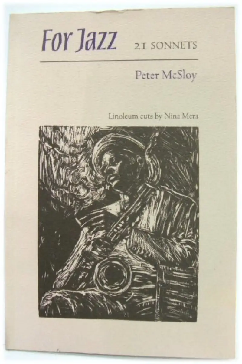 For Jazz: 21 Sonnets, by Peter McSloy with linoleum cuts by Nina Mera. 55pp. Cloth-bound £16 inc. pp (ISBN 0-936156-01-5); paperback £8 inc. pp (ISBN 0-936156-02-3) from For Jazz, PO Box 43, Manchester M20 6LN. Tel: 0161 445 4046